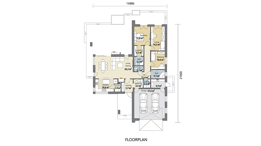 2 Bedroom 2 Living 1 Kitchen 3 Bathroom 2 Garage Area:224.61m²